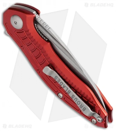 The Bionic 2.0* is a stylish, high performance everyday carry knife from Jason Brous that is a joy to use. Using the flipper tab, with an optimally set detent and a smooth ball bearing pivot, the blade deploys with a sweet congratulatory snap. It sports a modified wharncliffe blade profile with hollow grinds and a groove that provides visual appeal. The Bionic folder has a nice compact size that is comfortable in hand and is outfitted with lightweight 6061 red anodized aluminum scales, milled to reflect Jason’s creative talent. Stainless steel liners are nested in the scales and set apart by two barrel spacers. For EDC, the Bionic has a tip-up carry clip, which is reversible for a left hand carry option.