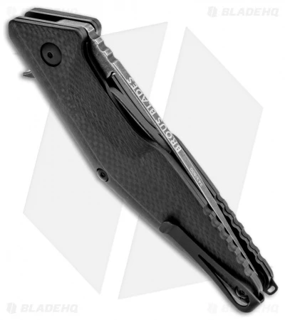 The handle’s slim profile allows for easy carry and gives the knife an extremely effective point. The 3D contoured Carbon Fiber handles support safe ergonomics with aggressive jimping rounding out the stylish balance of form and function. The Division Flipper has a titanium liner lock system. The lock tab is carbidized for a hardened lock face surface that eliminates stickiness. Stainless steel standoffs and flow-through construction make for a lightweight, durable and easy to care for large folder. Includes a versatile reversible, deep carry, tip-up pocket clip and lanyard hole. Includes a signed certificate of authenticity.