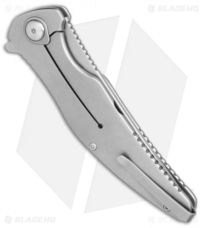 This Sniper Frame Lock model has a gray stainless steel handle and a stonewashed blade.