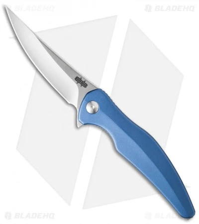 This model has a blue anodized aluminum handle and satin finished D2 tool steel blade.