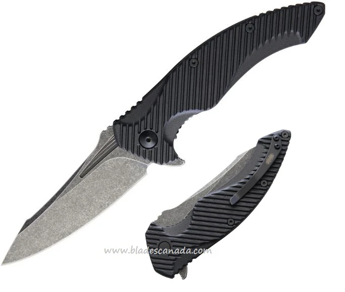 A collaboration Design by Jason Brous and Jason Moriel-Riboloff from Tanium Design, The T4 was created to fulfill a multi-use category such as a fighter, every day carry or survival knife. The D2 blade is a multi-purpose hollow ground modified drop point and makes re-sharpening effortless. The T4 utilizes an integrated flipper for quick blade deployment on a ball bearing pivot system as well as an elegant recessed finger groove on each side for easy and comfortable thumb opening. The handle scales and backspacer are made from contoured polymer.Â