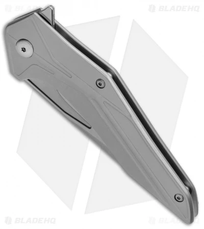 This Tyrant model has a satin finished D2 blade and a silver anodized aluminum handle.