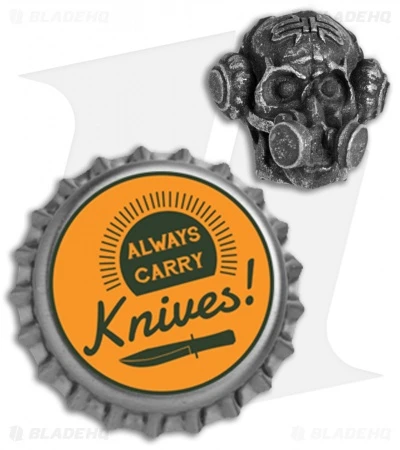 This Brous Gas Mask Skull bead from Schmuckatelli comes in a black oxide finish. Schmuckatelli lanyard beads offer the perfect accessory your favorite knives and gear. Click on the pictures above for a larger, detailed look at this intricately designed skull bead.
